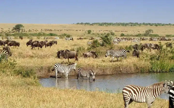 تخيل مشهدًا تتحرك فيه ملايين الحيوانات البرية في تناغم مذهل عبر السهول العشبية الشاسعة، حيث تهاجر القطعان الضخمة من الحيوانات العاشبة، مثل الحمار الوحشي والنو الأزرق، عبر الأنهار والوديان، متجاوزة التحديات والمخاطر في رحلة ملحمية بحثًا عن الماء والمراعي الخصبة. هذه الظاهرة الطبيعية الساحرة تحدث سنويًا في محمية ماساي مارا، واحدة من أعظم العجائب الطبيعية في العالم وأفضل الوجهات لعشاق السفاري والمغامرة.