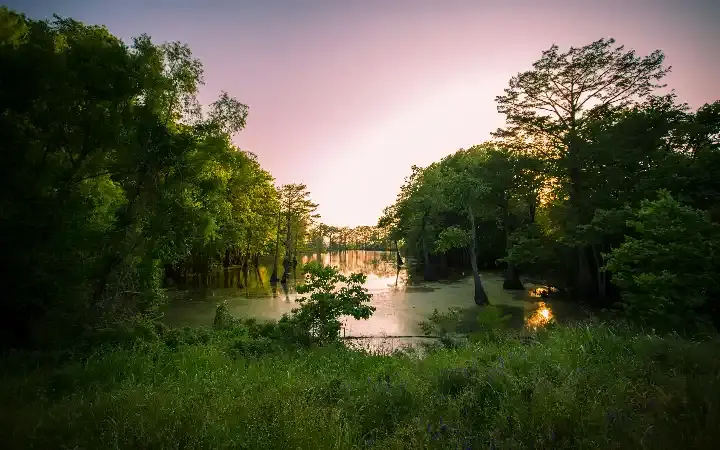 على بعد مسافة قصيرة من نيو أورلينز، تمتد مستنقعات لويزيانا الخلابة، موطن التماسيح والطيور المائية والأشجار المغطاة بالطحالب الإسبانية. يمكنك الانضمام إلى جولة بالقارب السريع (Airboat Tour) واستكشاف هذه العوالم الطبيعية البكر، مع فرصة لرؤية الحياة البرية عن قرب.