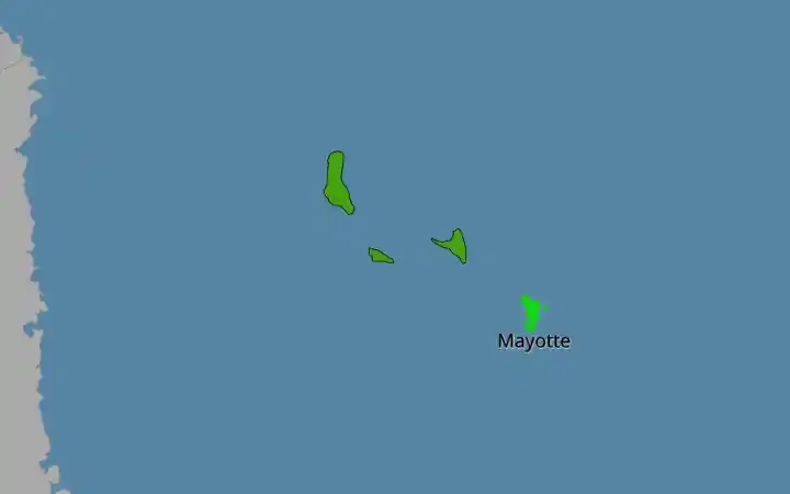 موقع جزر القمر الثلاث في المحيط الهندي. وتظهر جزيرة مايوت التي مازالت فرنسية