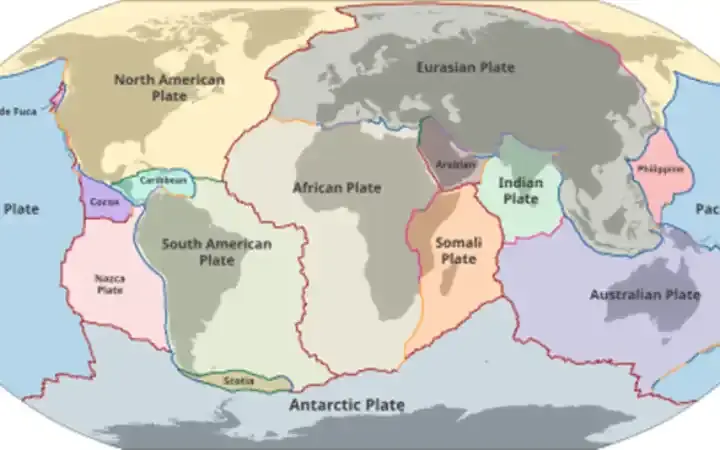 ست عشرة صفيحة تكتونية رئيسية للقارات وقاع المحيطات