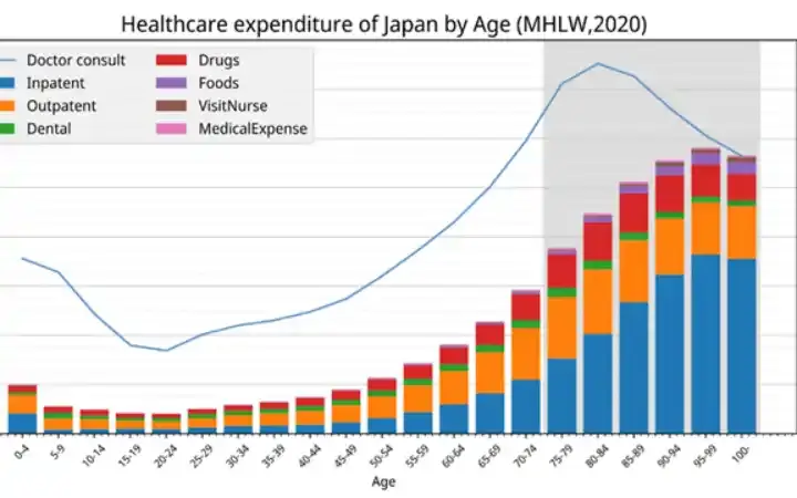 نفقات الرعاية الصحية في اليابان وفقاً للعمر