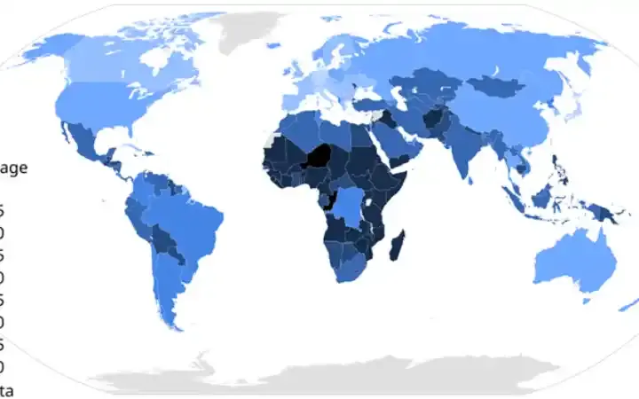 وزع العمر الوسطي عالمياً عام 2017