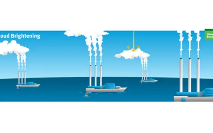 • تفتيح السحب البحرية (MCB): زيادة انعكاسية السحب البحرية المنخفضة لعكس المزيد من ضوء الشمس إقليمياً (رذاذ السفن).