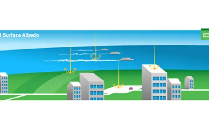 • تعديل بياض السطح: زيادة انعكاسية الأسطح (أسطح المدن والصحاري). تأثير أقل ومخاطر عالمية أقل.