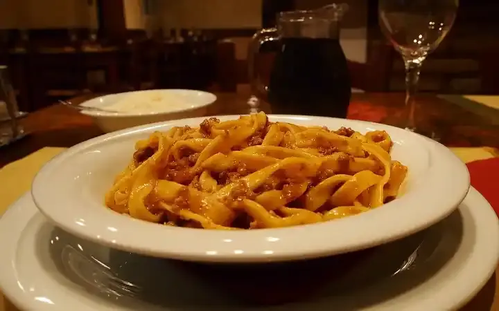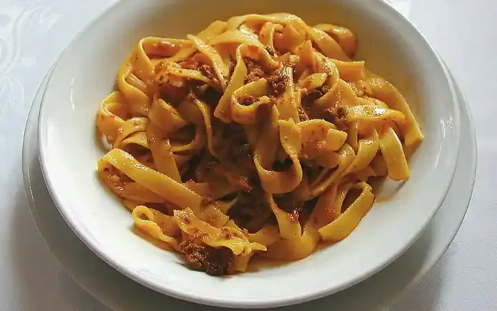 تالياتيلي مع الراجو كما يتم تقديمه في بولونيا