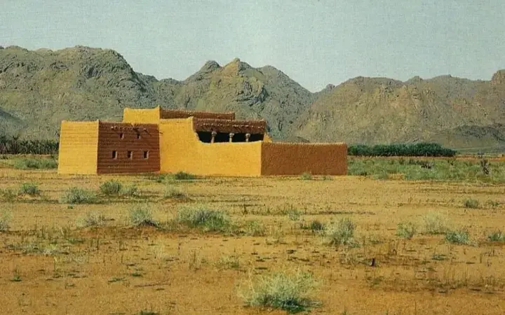 أحد البيوت القديمة التي تستعمل أجزاء من شجرة النخيل في بنائها