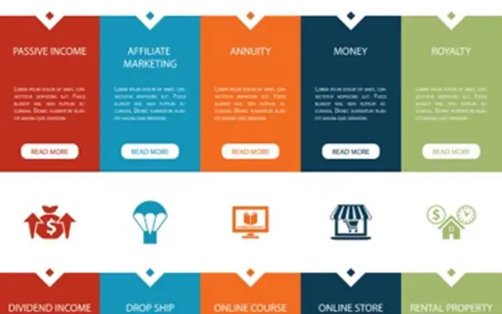 ث. مصادر الدخل السلبية عبر الإنترنت/الأتمتة - التسويق بالعمولة، وإيرادات الإعلانات من المحتوى، والدورات التدريبية عبر الإنترنت، والبرمجيات كخدمة (SaaS)، والتطبيقات.