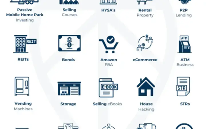 من خلال مراجعات "مصادر الدخل السلبية في عام 2025"، نرى أن العديد من المصادر تُركز على مزيج من: أرباح الأسهم + المنتجات الرقمية عبر الإنترنت + العقارات المؤجرة + التسويق بالعمولة.