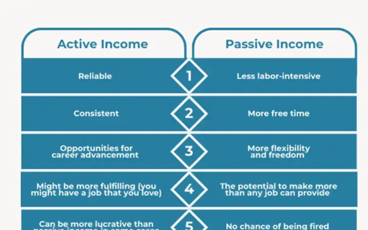 • يُقارن الدخل السلبي بالدخل النشط - حيث تستبدل الوقت/الجهد بأجر (وظيفة، عمل حر).