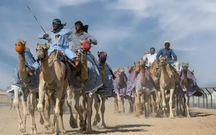 تُعد سباقات الإبل الحديثة في عُمان حدثاً منظماً للغاية، مع مسارات مخصصة، وفعاليات مجدولة، وأنظمة تدريب صارمة. تُقام السباقات عادةً في الأشهر الباردة، وتجذب المشاركين من جميع أنحاء البلاد ودول الخليج المجاورة. يتم تربية الإبل، المعروفة باسم "الهلال"، من أجل السرعة وخفة الحركة، وتتميز بأجسامها النحيلة وأرجلها الطويلة التي تميزها عن إبل الحمل التقليدية. يبدأ التدريب مبكراً، غالباً عندما تكون الإبل في عمر بضعة أشهر فقط. يستخدم المدربون مزيجاً من التغذية والتمارين الرياضية والتكييف لإعداد الحيوانات، وزيادة قدرتها على التحمل والاستجابة تدريجياً. تُعد العلاقة بين المدرب والجمل أمراً بالغ الأهمية، فهي مبنية على الثقة والتواصل الدقيق. في الماضي، كان صغار السن -غالباً من الأطفال- يركبون الإبل، لكن المخاوف المتعلقة بالسلامة والأخلاق أدت إلى انتشار استخدام الروبوتات كفرسان. هذه الأجهزة خفيفة الوزن، المثبتة على ظهر الجمل، يتم التحكم فيها عن بعد ومجهزة بأسواط ومكبرات صوت تحاكي الأوامر البشرية. لقد أدى إدخال الروبوتات كفرسان إلى تغيير الرياضة، مما جعلها أكثر أماناً واتساقاً مع الحفاظ على الروح التنافسية. تتميز السباقات بالسرعة والإثارة، حيث تصل سرعة الإبل إلى 40 كيلومتراً في الساعة. يتجمع المتفرجون على طول مضمار السباق أو يشاهدون من المنصات المرتفعة، ويهتفون بحماس مع تقدم متسابقيهم المفضلين. لا تكمن إثارة السباق في السرعة فحسب، بل أيضاً في أناقة الحركة، واستراتيجية تحديد الوتيرة، والتشويق الذي يرافق النهايات المتقاربة. إنه مشهد يأسر قلوب كل من عشاق السباقات المخضرمين والوافدين الجدد الفضوليين على حد سواء.