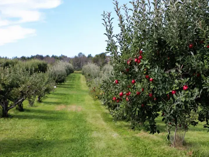في البستان، تتجلى السيمفونية—أو بالأحرى، التوقف المدروس—للظهيرة بشكل محسوس. تهمس الأوراق بتباين عال، حوافها محددة بظلال لكنها ناعمة بفضل انتشار حرارة الصيف الطبيعي. هنا، الهواء كثيف بالإمكانات؛ الأرض، كأرض خصبة، تنحني تحت التأثير الناعم للثمار الساقطة.