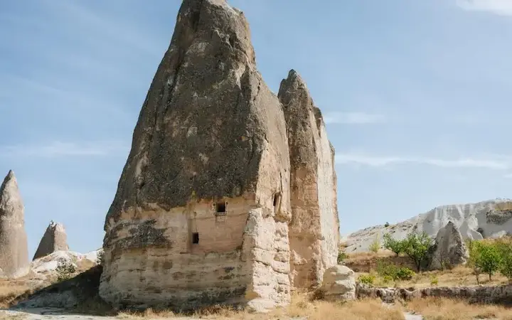 ليست مداخن الجنيات في كابادوكيا أبراجًا سحرية، بل بقايا مؤقتة شكّلها التعرية غير المتكافئة. إذ يبطئ الحجر الغطائي الصلب تآكل الصخور البركانية الألين تحته، فتظل أعمدة بارزة بينما تتجرد التضاريس المحيطة منها مع مرور الزمن.